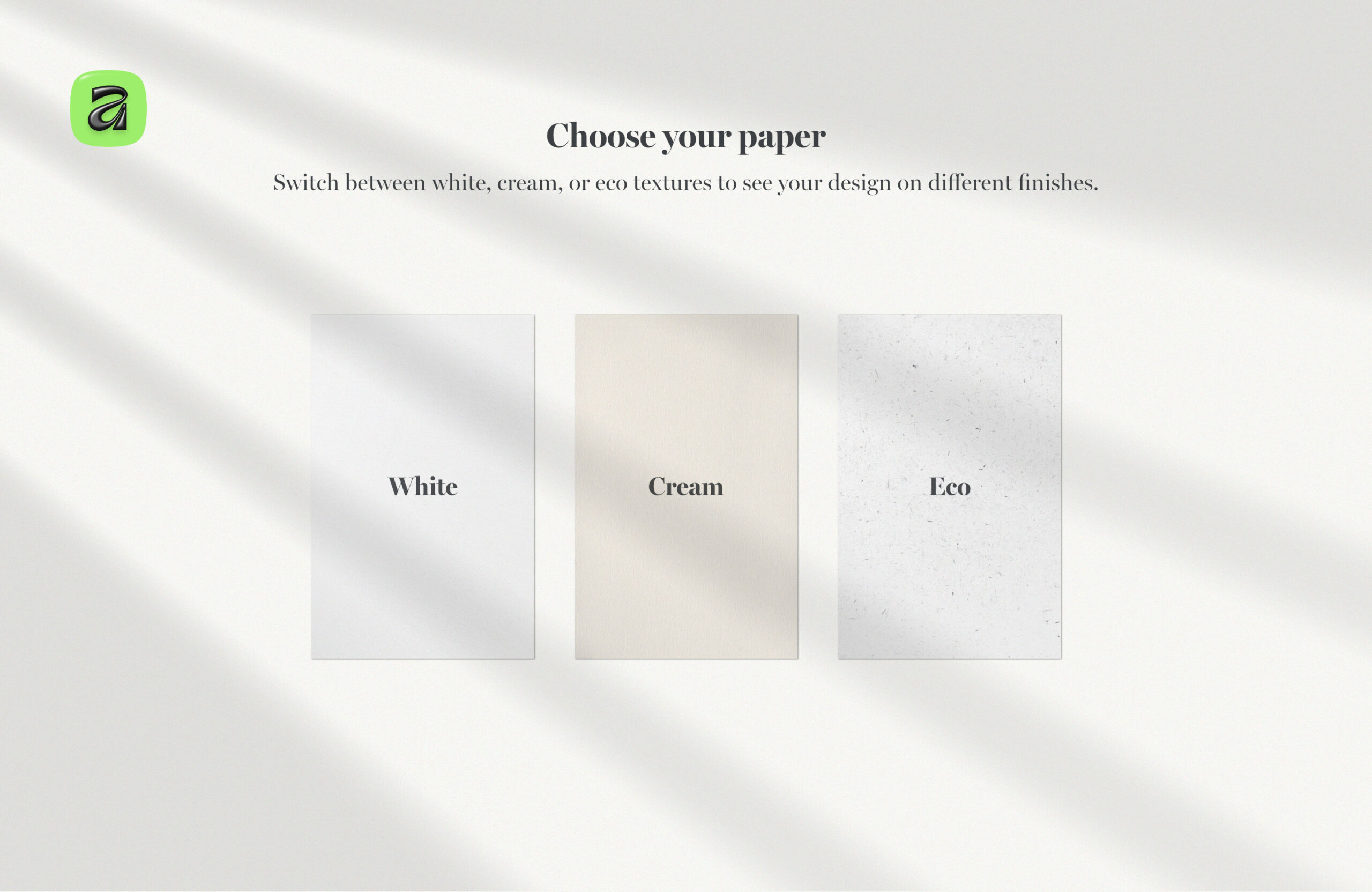 - 3 paper textures: white, cream, and eco