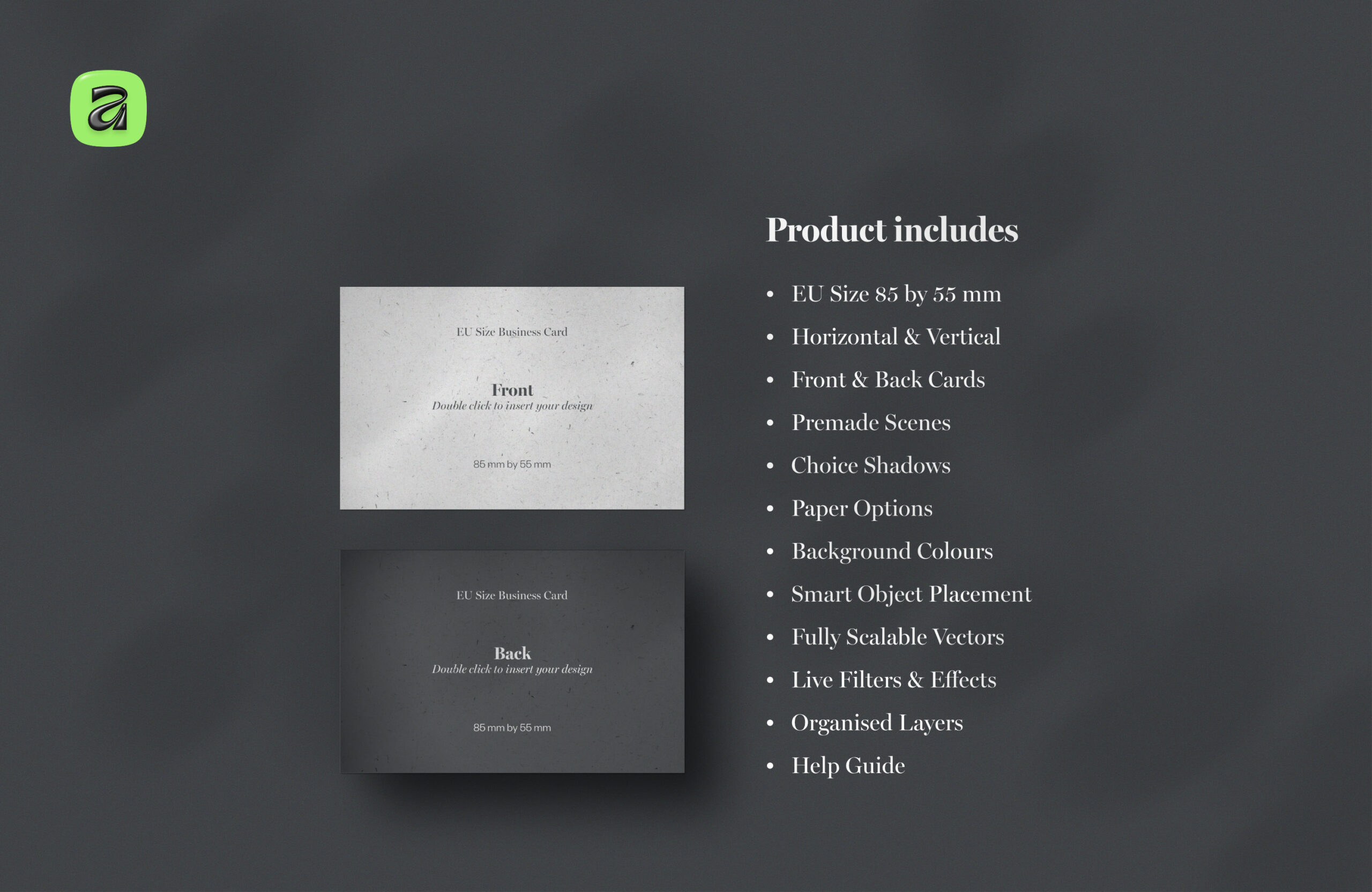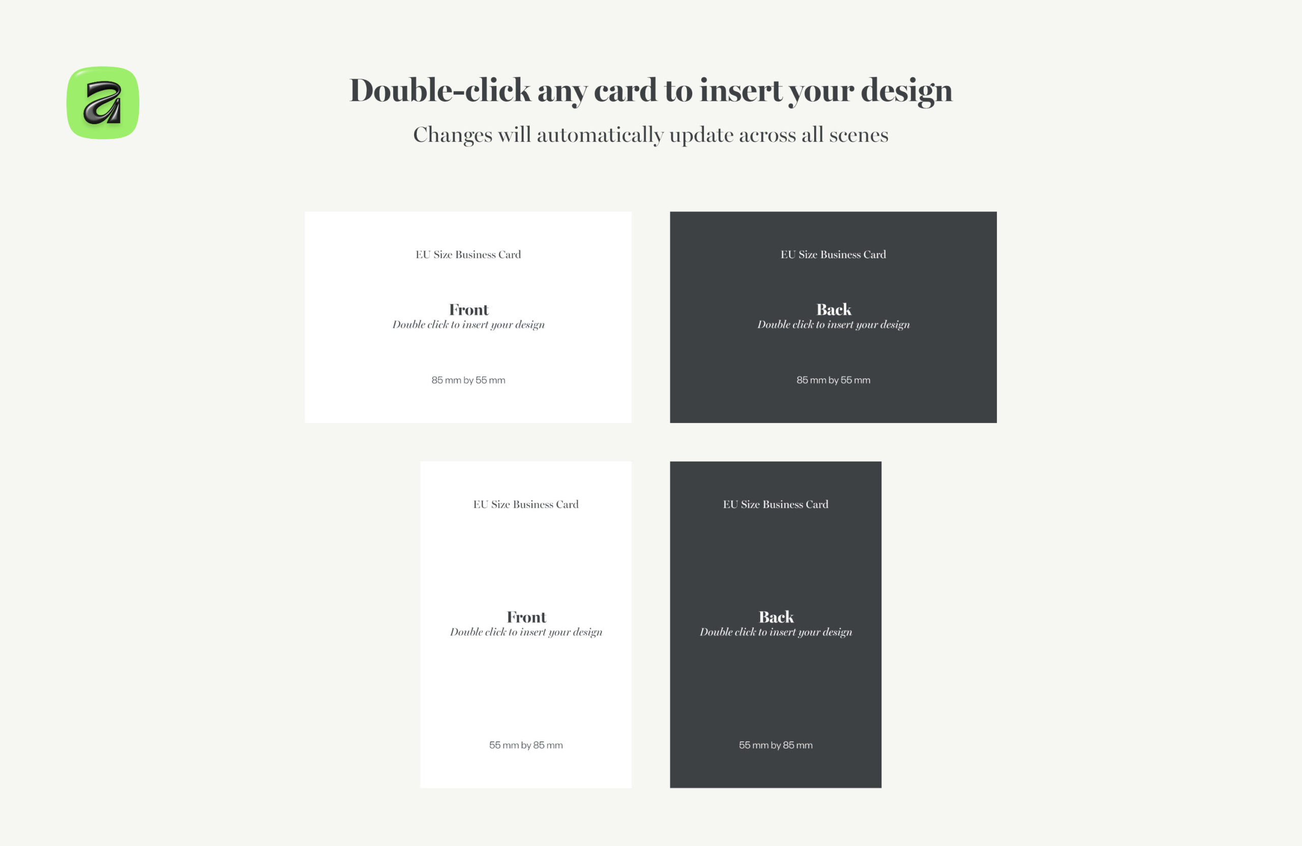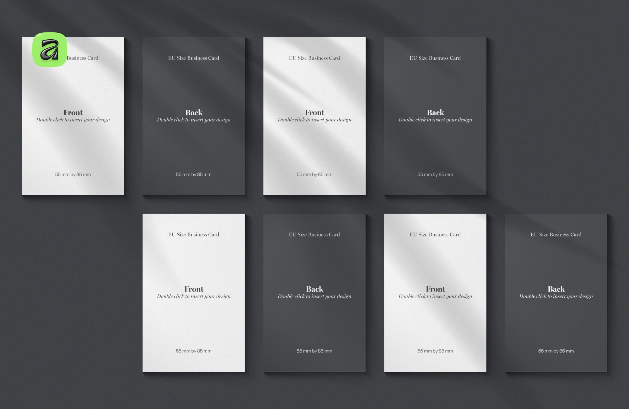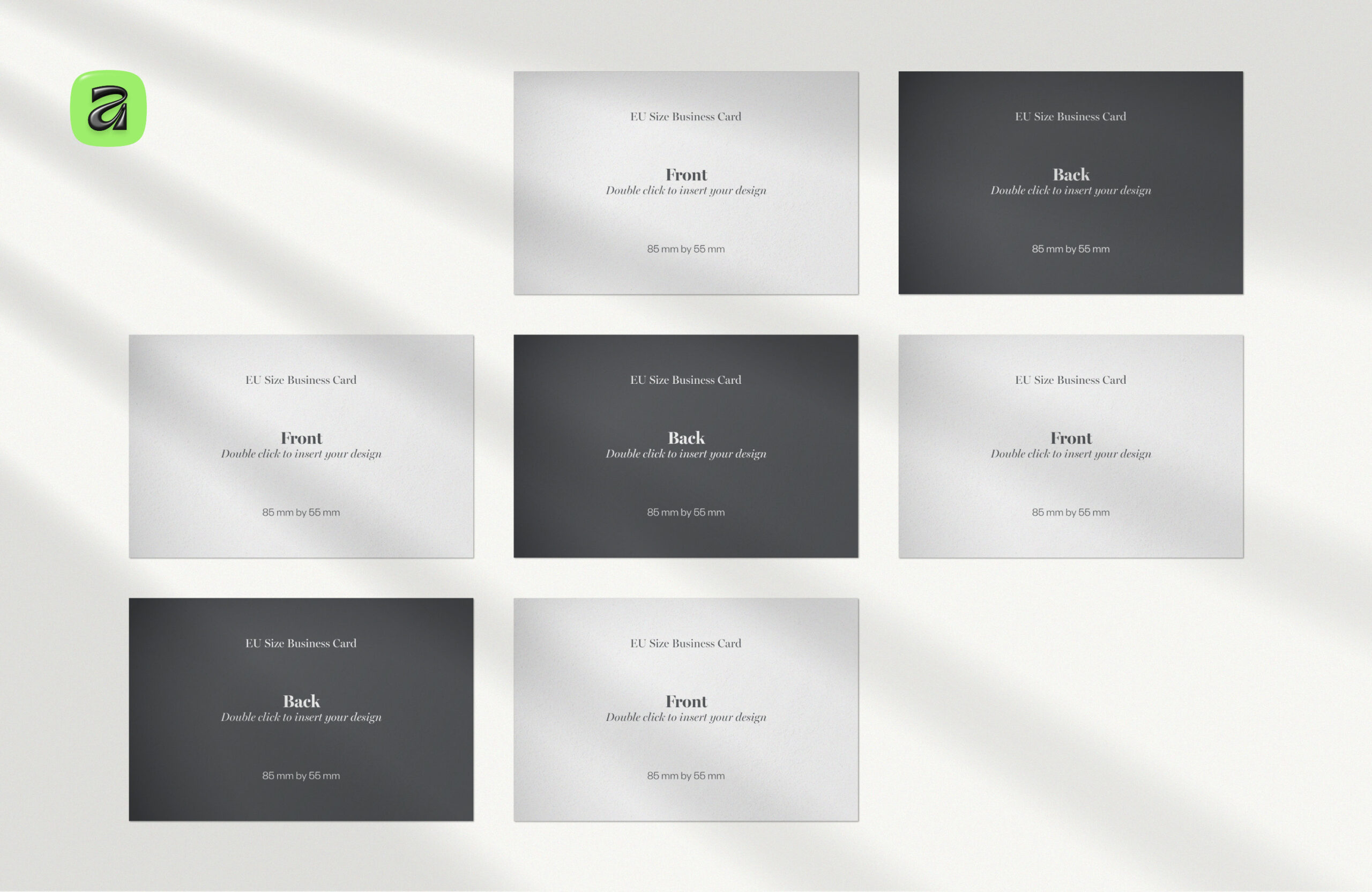 - EU business card size (85 × 55 mm)