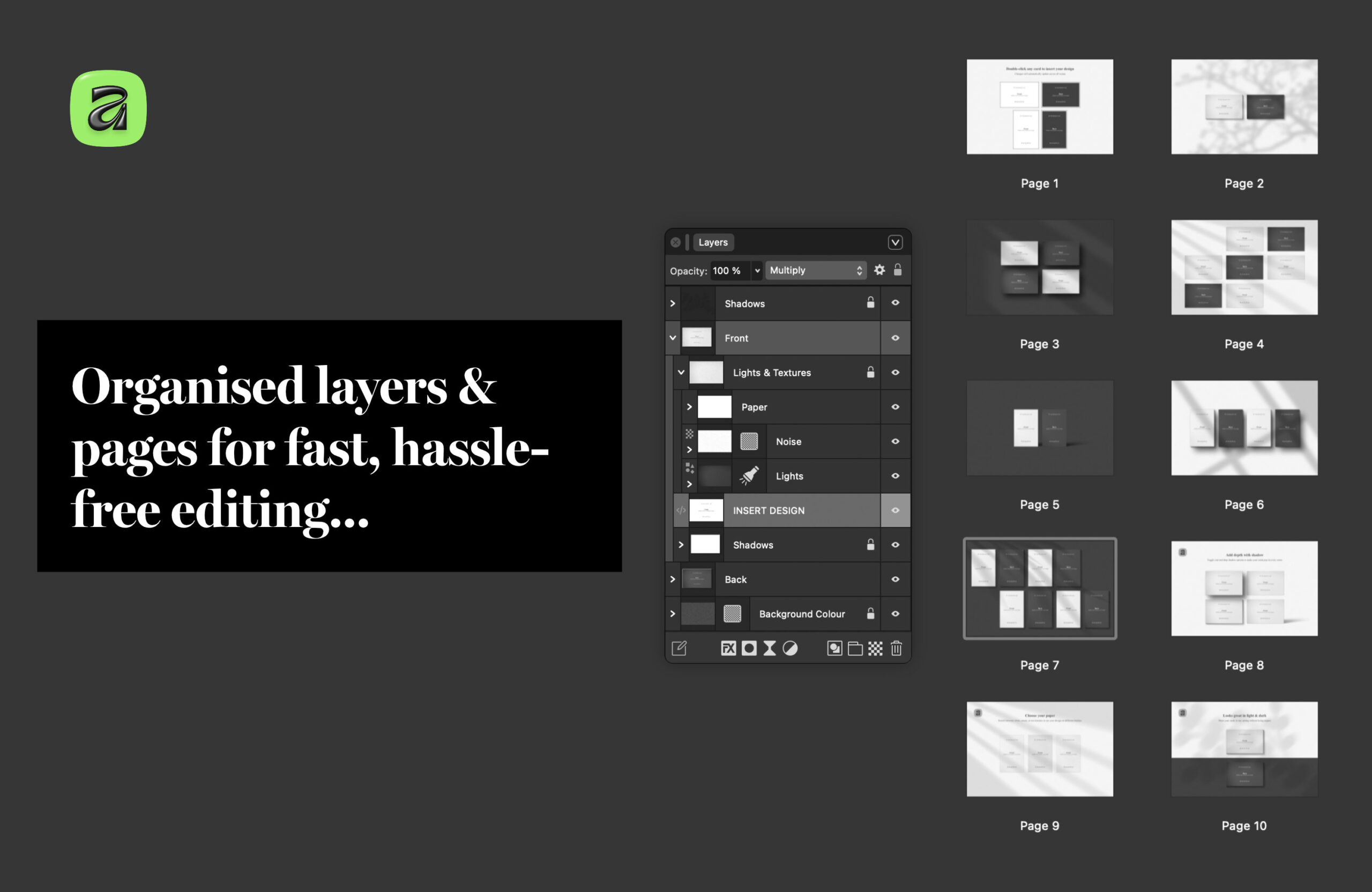 - Organised layers and help guide for fast, hassle-free editing