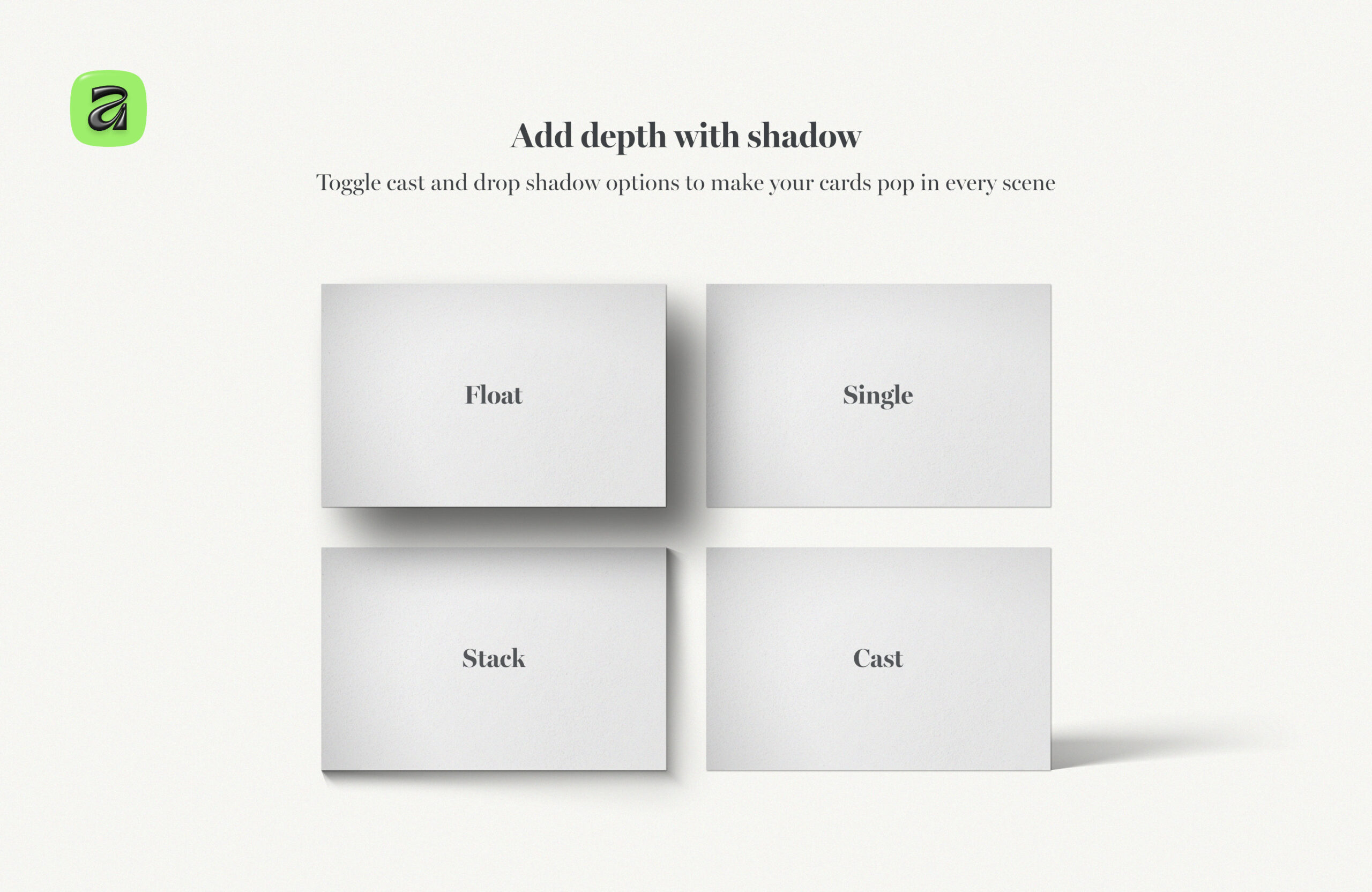 - Optional cast shadow overlay and 4 drop shadow styles